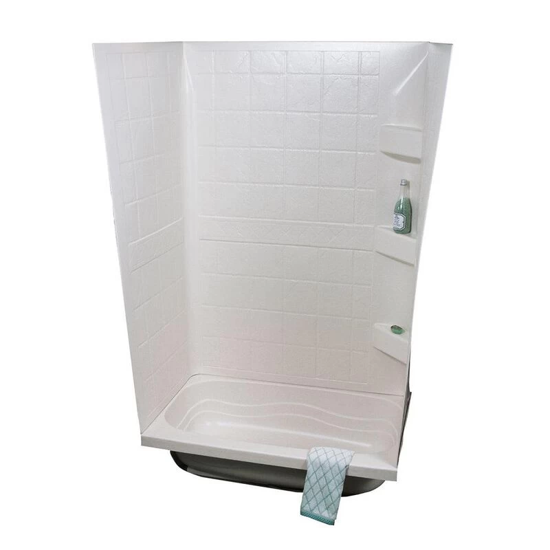 Durable tub surround protects your tub and shower space from water. One-piece design eliminates seams that can leak. Three handy built-in shelves hold shower essentials.