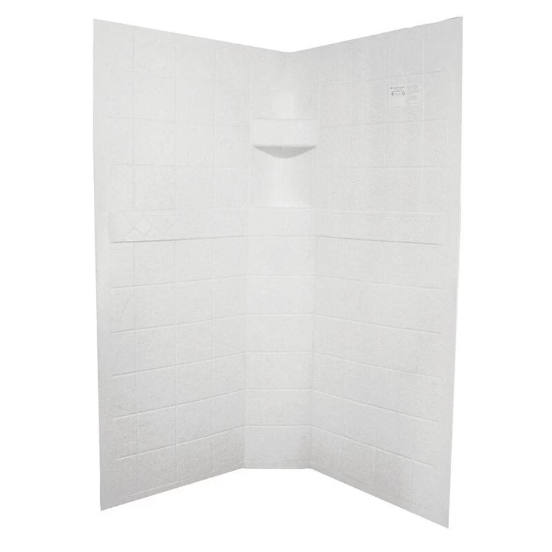 Durable shower surround protects your shower space from water. One-piece design eliminates seams that can leak. Two handy built-in shelves hold shower essentials.