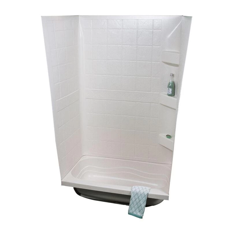 Durable tub surround protects your tub and shower space from water. One-piece design eliminates seams that can leak. Three handy built-in shelves hold shower essentials.
