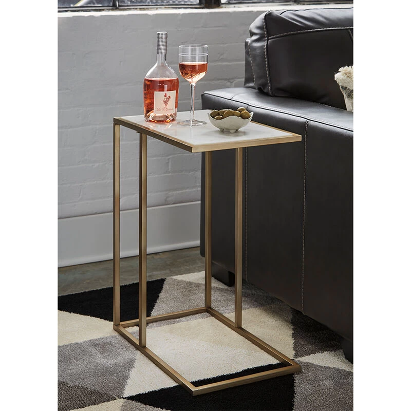 - C-shaped base slips easily beneath a sofa, sectional, or chair