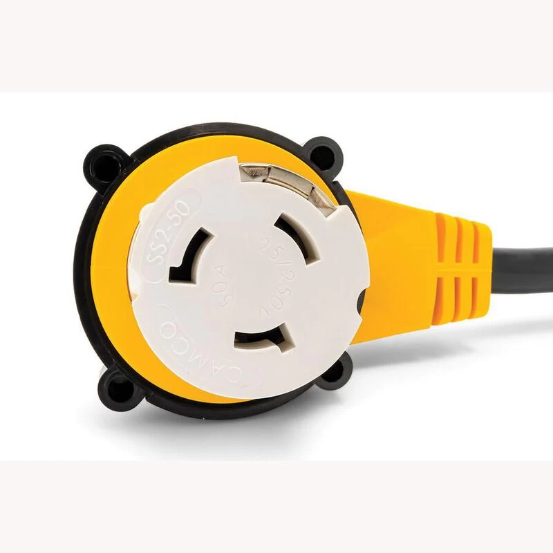 The 90-degree outlet connection reduces strain on the cord and allows for easier connection in tight places. The patented Power Grip handle design provides a solid grip, making for a hassle-free connection.