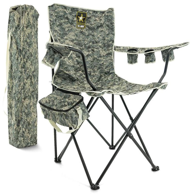 With six drink holders and removable side zip cooler, everything you need is within arm’s reach. Whether for use alone, with friends, or at events, the Giant Kingpin Folding Chair is always a big hit. Folds up compactly for easy storage or transport in the included carry bag with shoulder strap.
