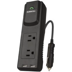 Simultaneously charge up to four of your favorite electronic devices right inside your car. The Duracell Powerstrip Inverter is ideal for families with many different devices, converting your car’s DC electricity into up to 175 watts of AC and USB power. The convenient powerstrip design features two grounded AC outlets and two 2.1-amp USB ports. A 3′ power cord allows easy placement and sharing while traveling, and its high-quality internal cooling fan ensures safe, silent operation.