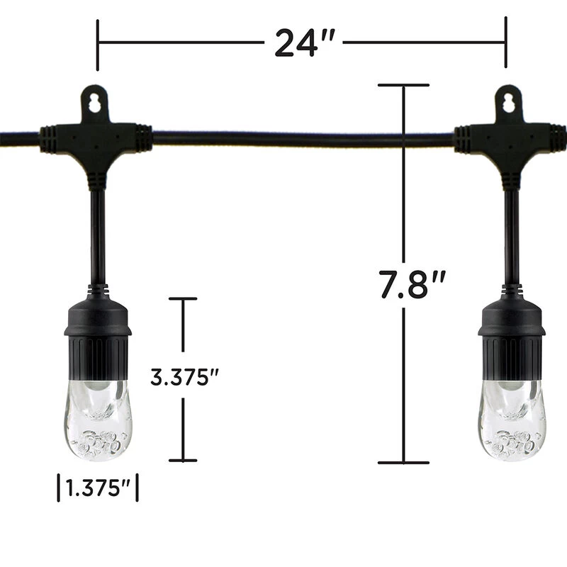 - 24′ string with 12 stylish, acrylic Edison-style bulbs