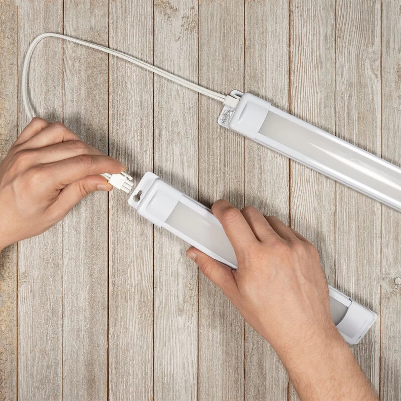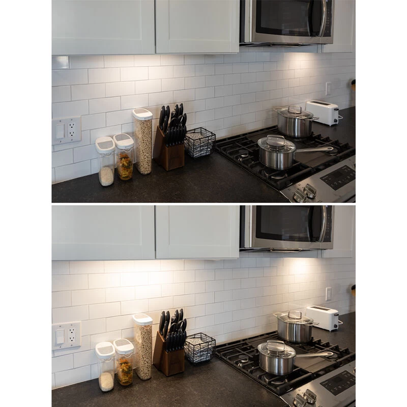 To achieve stylish accent lighting, simply mount the light underneath kitchen cabinetry, shelving, or bookcases using the keyhole slots located at the end of each fixture. In smaller enclosed areas, such as closets and pantries, use the lights to illuminate hard-to-see corners. The light’s slim design makes it convenient to place in locations with limited space. The toggle switch makes it easy to operate, allowing you to choose between high and low settings, as well as turn the light off. Make life a little brighter with Enbrighten Premium Linkable Light Fixture.