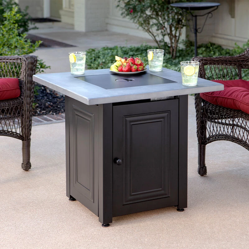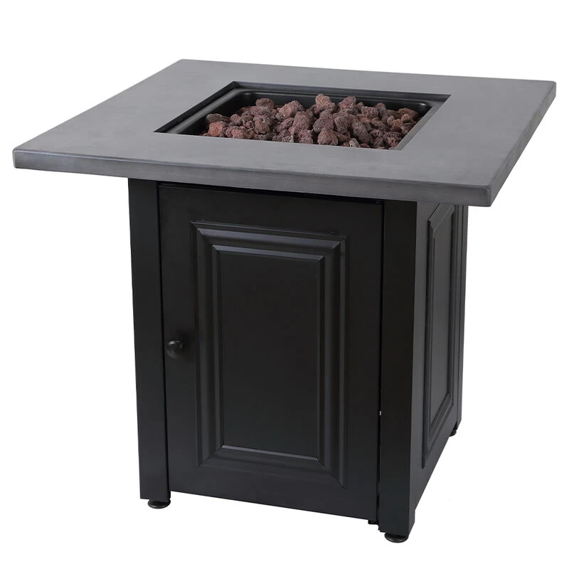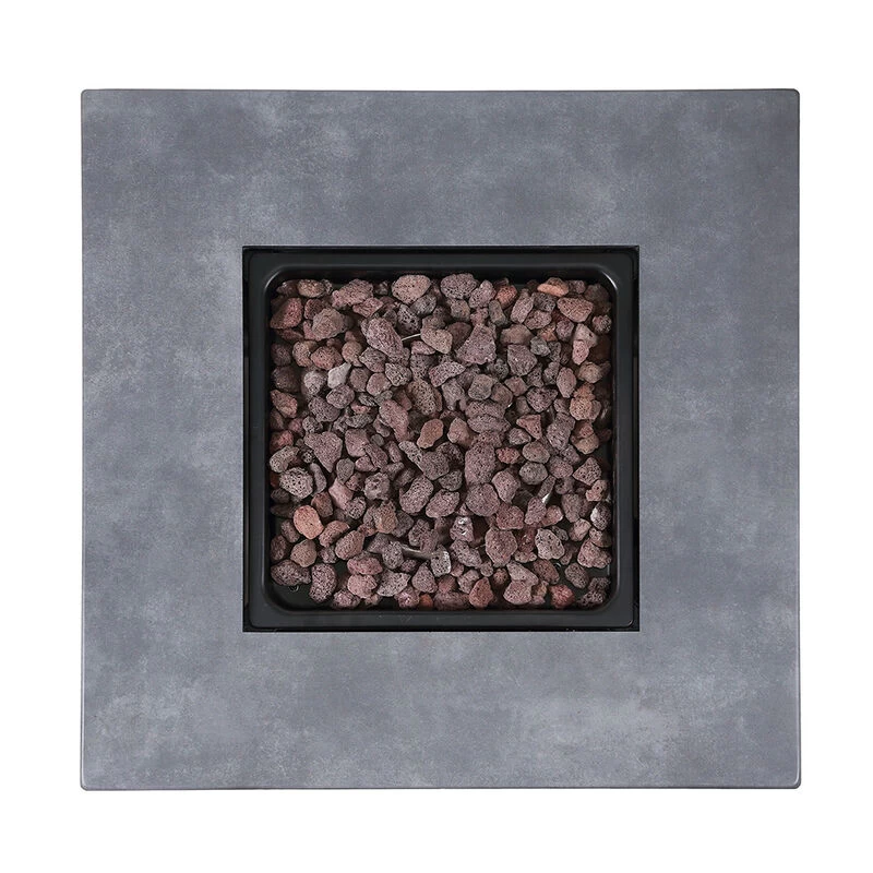 • Includes lava rock and steel embossed table insert
