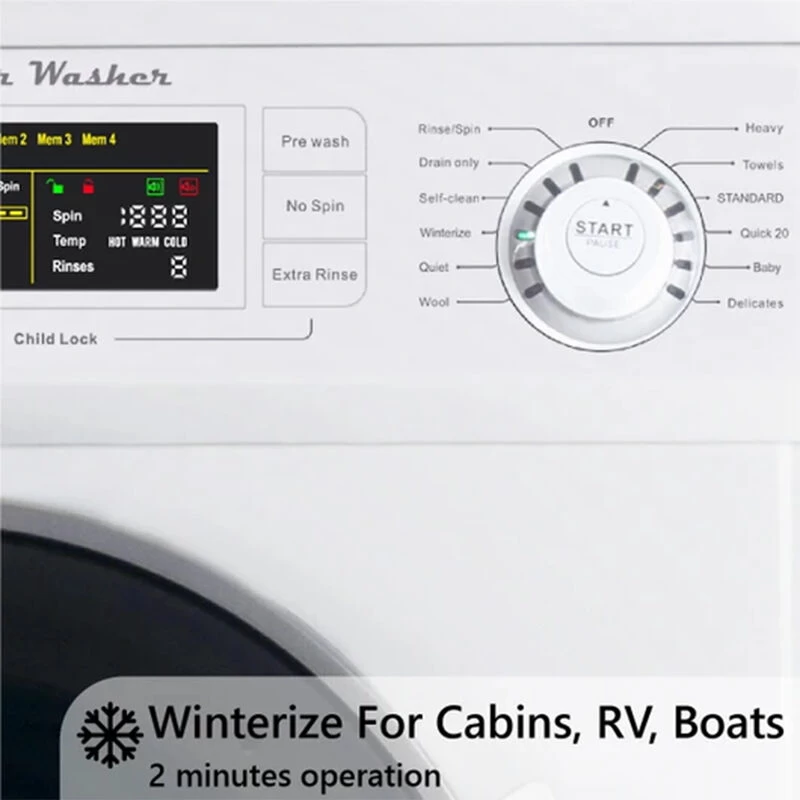 - Winterizing feature for RV users with quick 2-minute easy-to-operate cycle