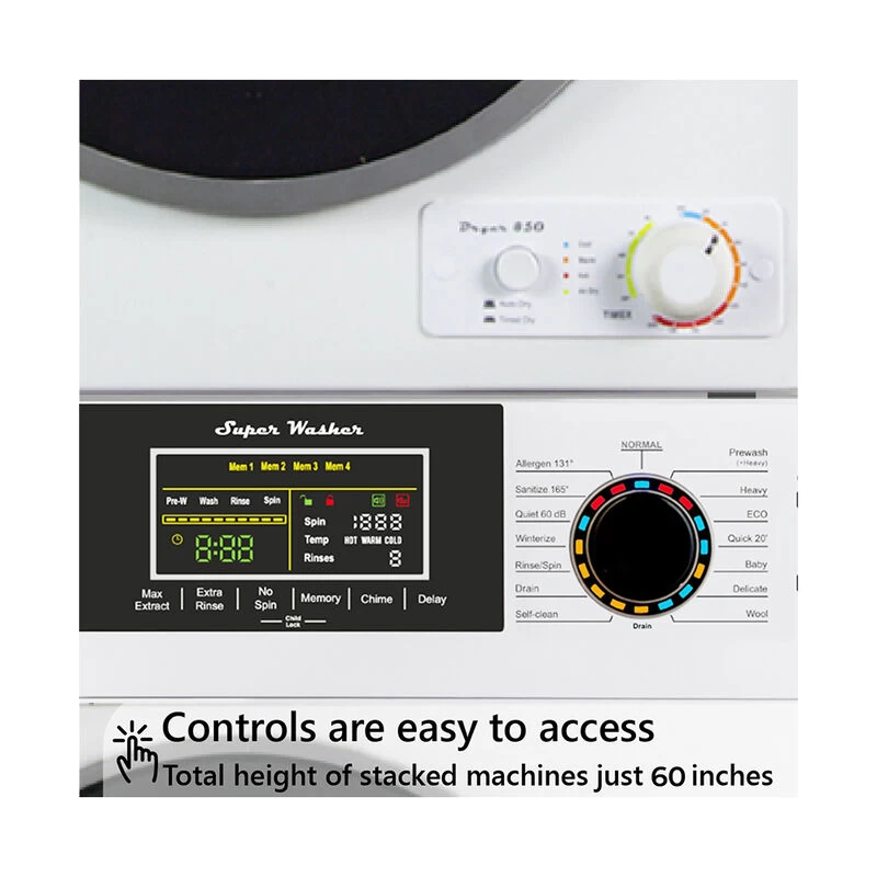 - Front-loading 13-lb. washer cleans small loads efficiently with minimal water