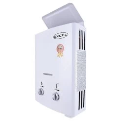 All other tankless gas water heaters rely on outdated rubber diaphragm technology to start the units and need pressures higher than 20 PSI to operate. The Excel Tankless Propane water heater is equipped with a magnetic flow sensor that allows the unit to start up at only 2 psi water pressure. Plus, it works at up to 120 psi. Ideal for small apartments, hunting or fishing cabins, small homes, boats, campers, RVs and mobile homes.