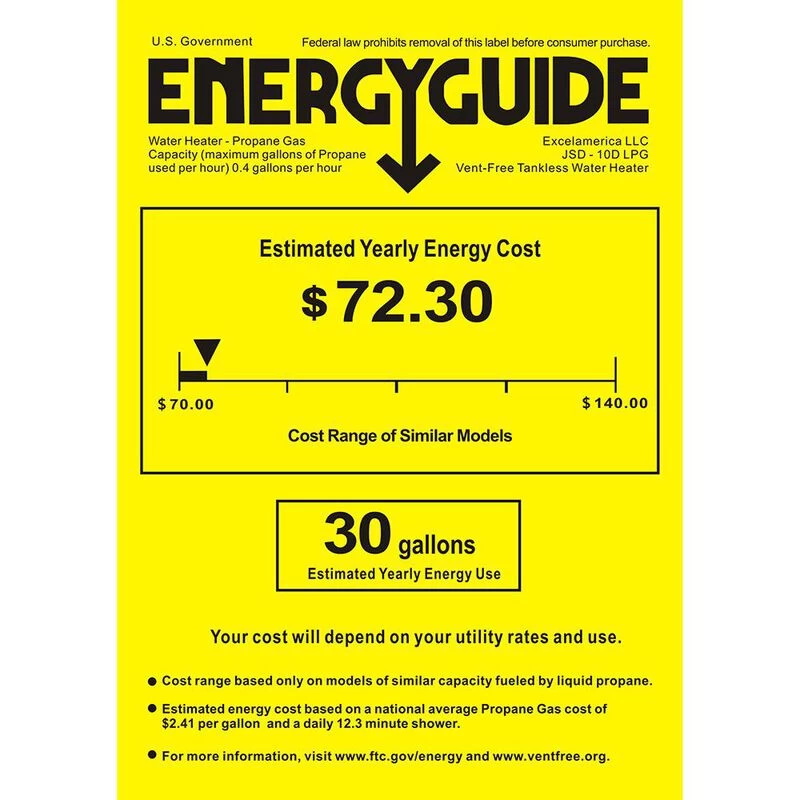 Vent-Free for Indoor or Outdoor Use. An Excel Vent-Free Water Heater can be installed indoors without cumbersome, costly flue and ductwork because it’s equipped with a state-of-the-art ODS (Oxygen Depletion Safety) shutoff device. With remarkable electronic technology that requires no standing pilot light, the Excel heater saves up to 25% in gas consumption when compared to older technology pilot light units. In case of a power outage, you can still enjoy hot water at home because it uses two (2) size “D” batteries to ignite the electronic spark module.