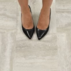 - Mottled pattern made to resemble marble with neutral hues to complement any space