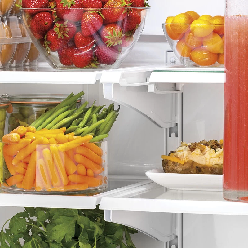 • Spill-proof shelves provide a variety of food storage options