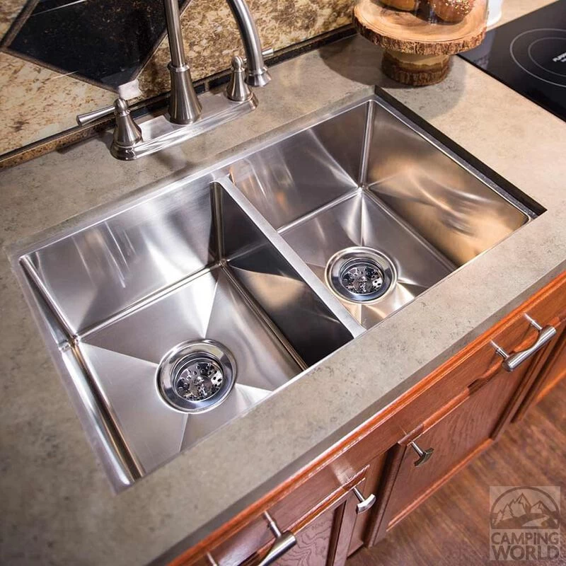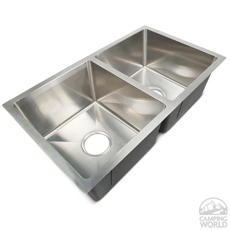 Upgrade your RV sink to a professional-grade, ultra-durable stainless steel sink like those found in a chef’s kitchen. A superior replacement for a damaged, old, stained sink, bringing expanded versatility to any RV kitchen. Easy to clean and made to withstand heavy-duty use. Both models are 27″W x 16″L x 8 1/2″D overall and mount under countertop.