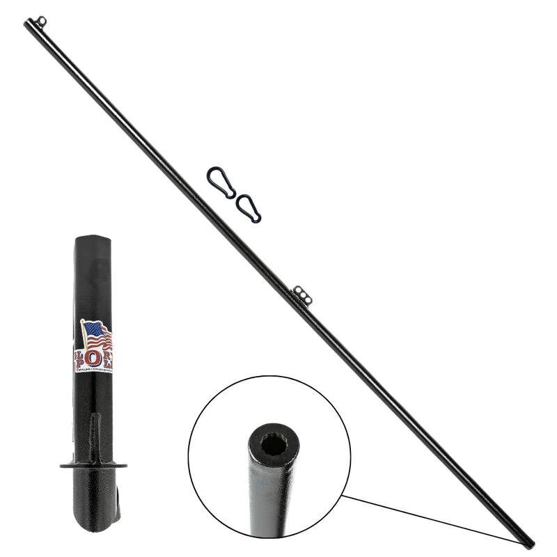 • 6′ flagpole is made of 1-1/4″ dia. steel tubing with welded steel tabs