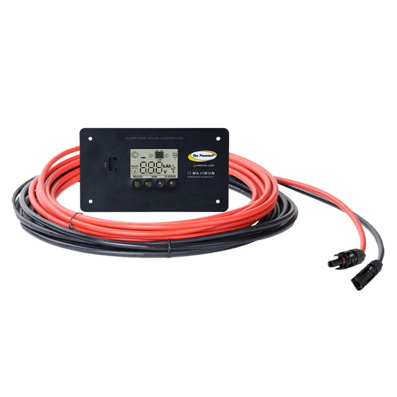 Solar Controller: 30A PWM, multi-battery option, 4-stage charging, digital display, flush mount, dual bank with USB