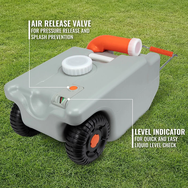 When nature calls, prepare to haul! There’s nothing more fun and exciting than an RV trip, but who wants to worry about yucky waste? Instead of asking ‘where’s the next rest stop?’, welcome aboard the RV Black Water Tank from Hike Crew. With a spacious 6-gallon holding capacity, our universal wheeler provides exceptional portability and excellent sanitary performance for campers, trailers, busses, and recreational vehicles of all makes and models. When your blackwater tank is full and there’s no dump station in sight, grab your Hike Crew rolling container for instant relief. Waste flows effortlessly into the filling port as users enjoy a clean, odorless, splash-free draining experience. Once filled to capacity, the liquid can be stored for future emptying or rolled directly to an approved site while your camper stays put. From cross-country vacations to boondocking adventures, you’ll always have the luxuries of home! Add a Hike Crew RV Black Water Waste Tank to your cart today!
