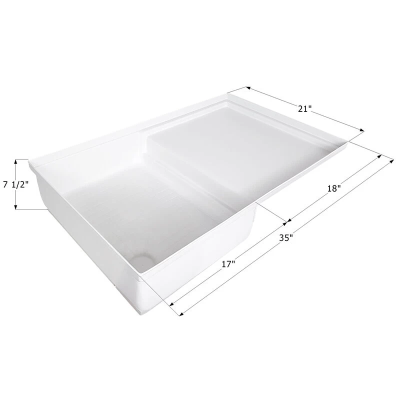 The ICON SP400 Combo Shower Pan is designed for showers that include a toilet. The stepped pan allows for the installation of a holding tank directly under the toilet. This shower pan is constructed of durable ABS plastic with a reinforced bottom for extra durability. The drain is molded into the pan and ready to be drilled.