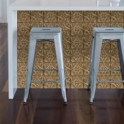 - Faux metallic tiles with a beautiful geometric pattern with floral motifs