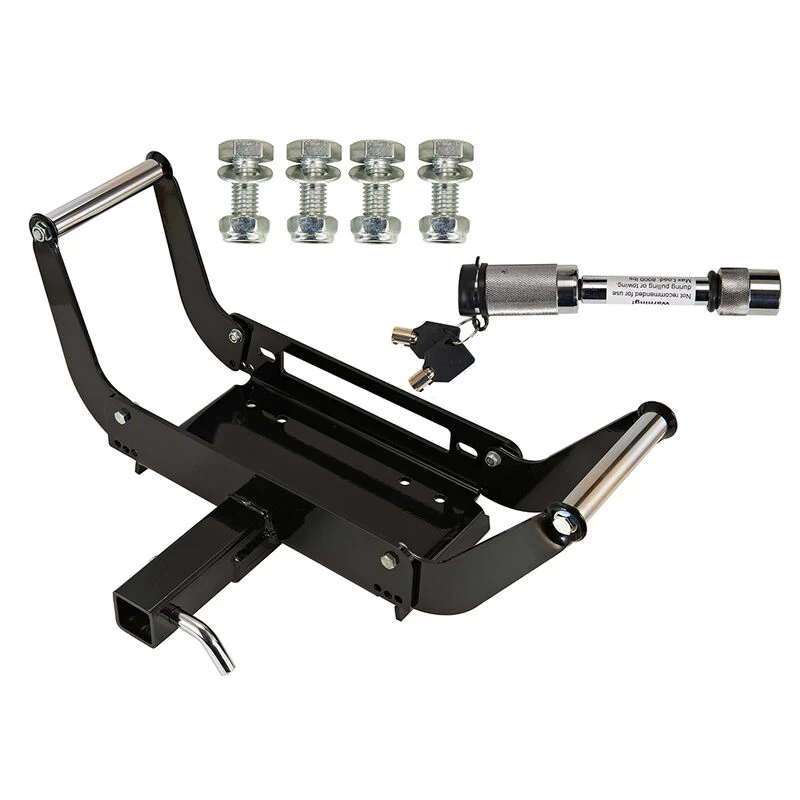 This 10″ x 4.5″ quick winch holder and lock from Off Terrain is perfect for 4,000 to 12,000 lb winches, and easily mounts to any 2 x 2 hitch. Black powder coat helps to prevent rust while the 0.2 inch solid steel construction ensures a steady operation.