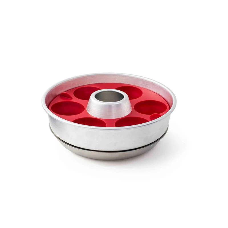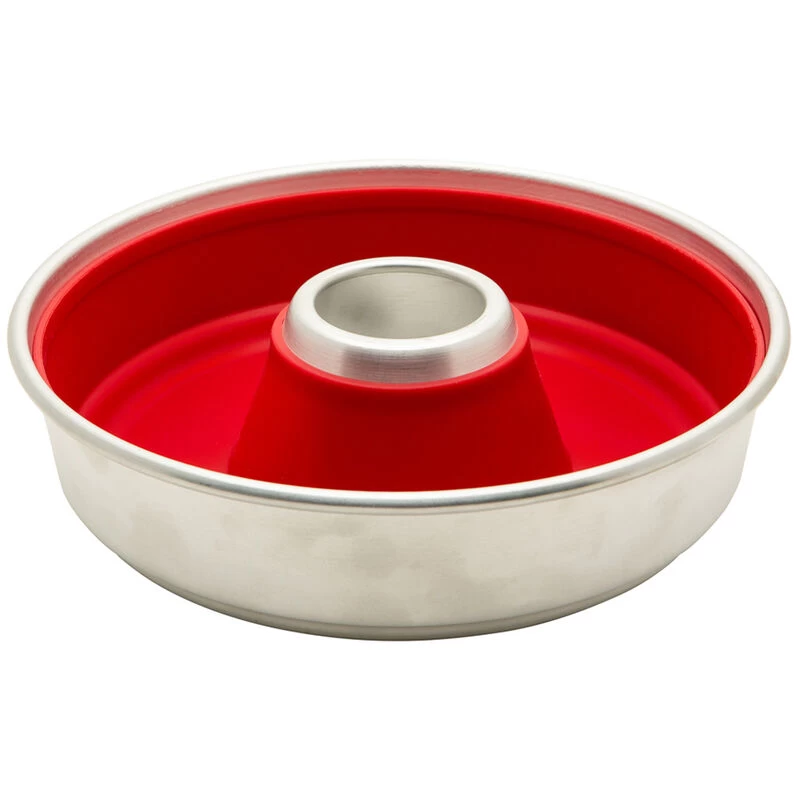 This custom-made Omnia silicone mold can be used with the stove top oven or on its own. Bake cakes, casseroles, and more in this round silicone baking mold. Wash in water with detergent before first use. Grease lightly with margarine or similar to prevent breads and cakes sticking.