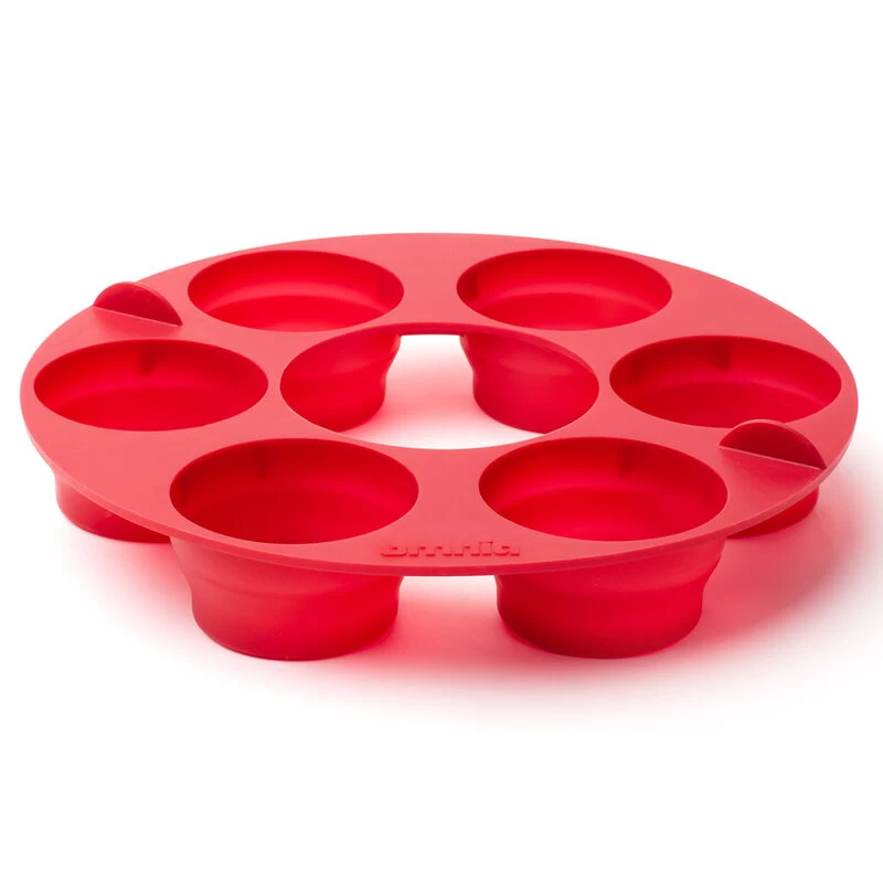 This six mold, silicone muffin ring from Omnia takes baking to the next level. It’s collapsible feature allows for easy and compact storage without sacrificing functionality. Bake delicious desserts and pastries on your stovetop with the Omnia muffin ring and stove top oven. Wash in water with detergent before first use. Grease lightly with margarine or similar to prevent breads and cakes from sticking.