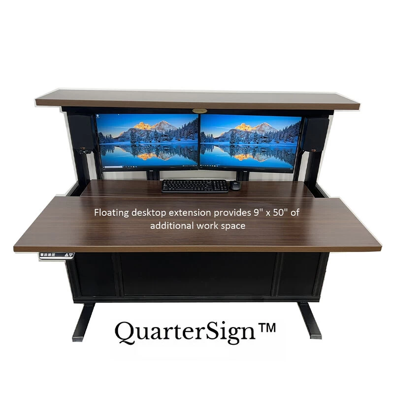 Dimensions: 30″W x 60″L x 29″HFloating Desktop Extension provides: 9″ x x50″ of additional workspace