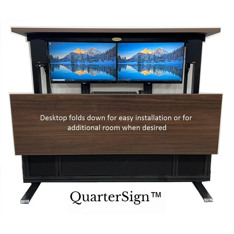 The Combination Desk/Dinette Dual Monitor Workstation is designed to replace a typical Dinette in any RV, motorhome, or trailer and will fit through a 20″ wide door.