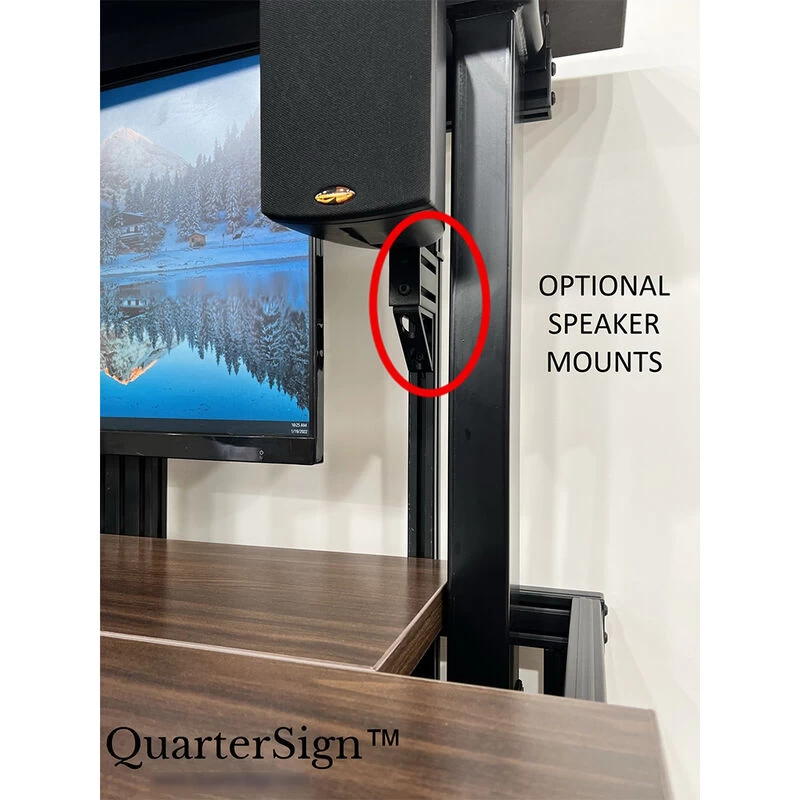 • The monitors rise up to 19″ which will easily accommodate two 24″ monitors or a single large monitor up to 44″ wide.