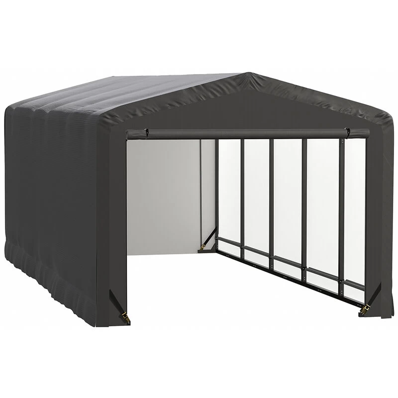 • Two (2) zippered doors and a tall door opening height allow for easy drive-through access and for fitting large vehicles inside. The unit comes with roll-up door kits for quicker entry.