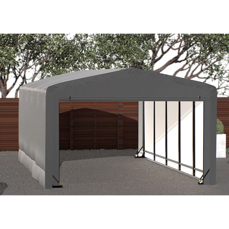 • Two (2) zippered doors and a tall door opening height allow for easy drive-through access and for fitting large vehicles inside. The unit comes with roll-up door kits for quicker entry.