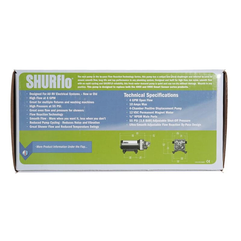 Automatic demand design eliminates the need for an accumulator tank or complicated electronics. Built eco-friendly for efficient power use and reduction of hazardous waste. Built-in automatic thermal overload protection. Runs dry without damage. Built-in check valve prevents backflow. Dry primes to 6 vertical feet. Easily replaces Shurflo Smart Sensor pumps. 12-volt, 10 amps max.