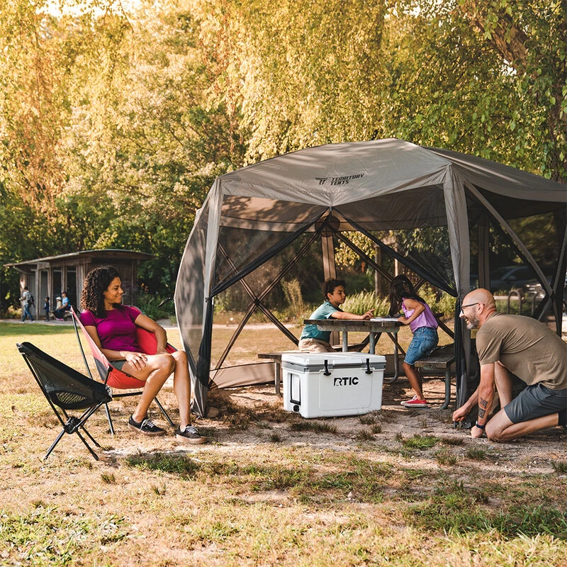 • Mesh wall panels provide air flow while keeping the bugs out