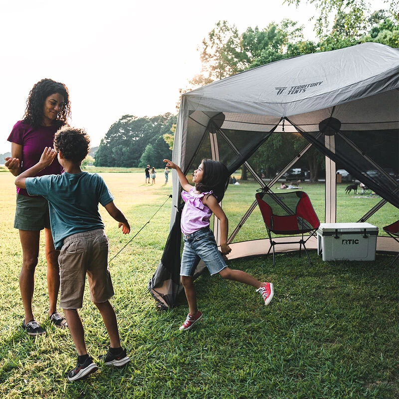 - Mesh wall panels provide air flow while keeping bugs out