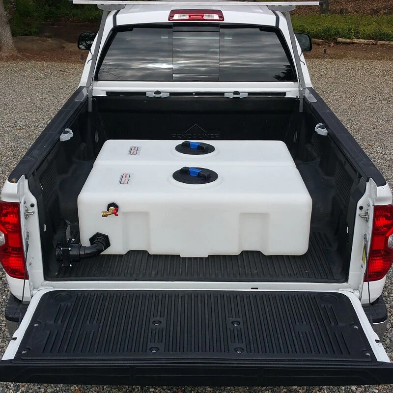 •50 gallon, high-density, UV stabilized polyethylene tank with a vented, screw-on cap.