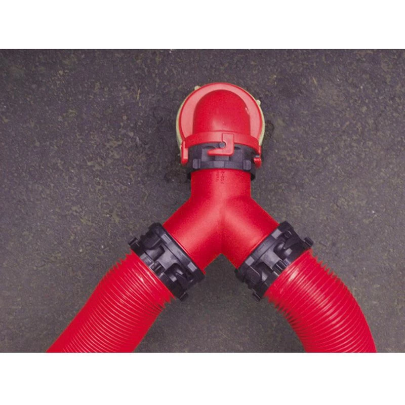 Join two outlet hoses to one sewer hose line when RV has two separate holding tank valves.