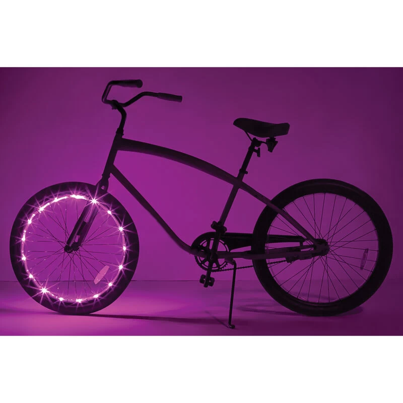 Uses 20 micro LED lights to create a ring of brilliant color that is sure to turn heads wherever you go. Includes 1 string of LED lights in 7’ clear waterproof tubing with connector battery pack, end cap, six mounting ties to secure LED light string, and instructions.